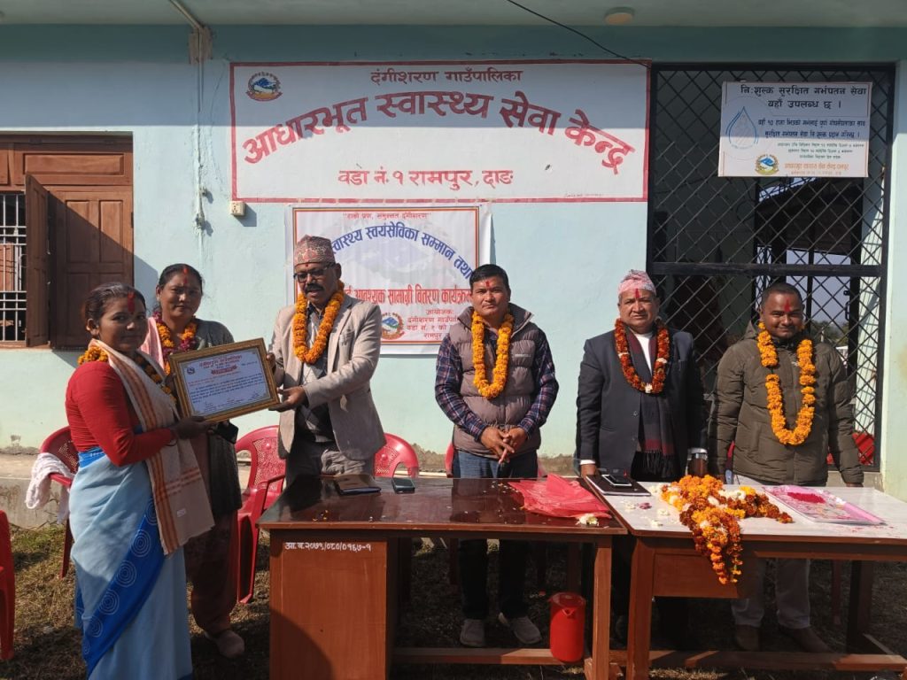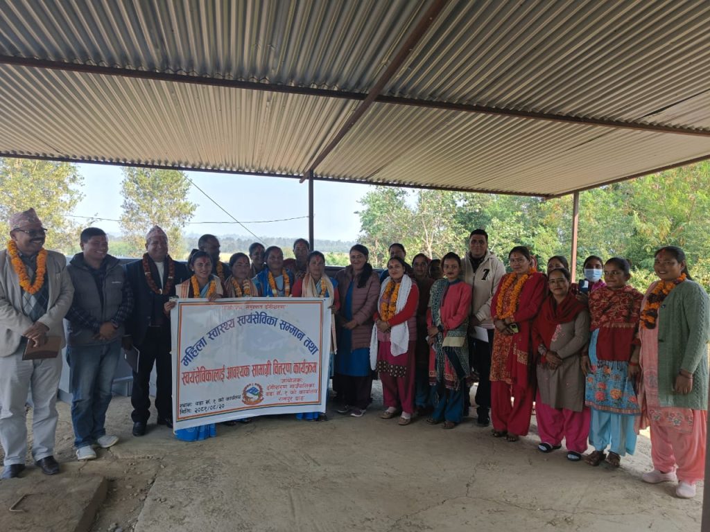 दंगीशरण गाउँपालिका वडा न १ ले महिला स्वास्थ्य स्वयंसेविका सम्मान तथा स्वयंसेवीकालाइ आवस्यक सामाग्री वितरण कार्यक्रम सम्पन्न गरेकोछ ।