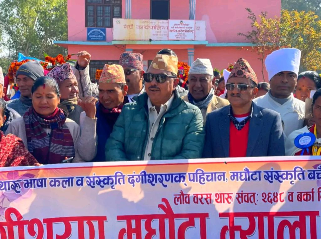 थारुजाती लोकतान्त्रिक,बैज्ञानिक,सस्कृती र परम्पराको खानि रहेको दाङ क्षेत्र न ३ प्रतिनिधिसभा सदस्य दिपक गिरीले बताएकाछ्न ।दंगीशरण गाउँपालिकाको आयोजनामा २६ र २७ गते चल्ने २ दिने माघि मघौटा म्याला २०८१ को शुक्रबार एक कार्यक्रमकाविच उद्घाटनगर्दै पुर्व सिचाइ मन्त्री गिरीले थारु सस्कार अनुसार निश्राउ दिएर मघौटा मेलाको उद्घाटन गरेकाहुन