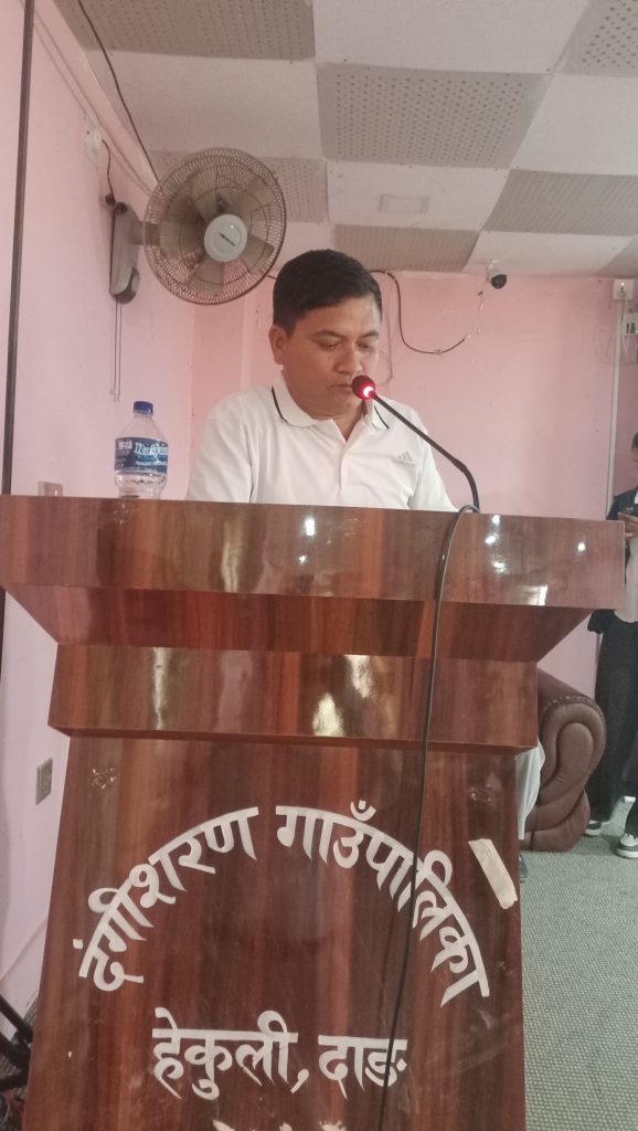 दंगीशरण गाउँपालिका हेफर प्रोजेक्ट नेपाल र नेपाल महिला सामुदायिक सेवाकेन्द्र दाङको सयुक्त साझेदारीमा संचालित कृषि पशु विकासमा आधारित सानाकिसान तथा युवा उधमसिलता विकास साझेदारी परीयोजना अन्तर्गत दंगीशरण गाउँपालिकाको कृषि विकास रणनीति तथा योजना तर्जुमा सम्बन्धि २ दिने कार्यसाला गोष्ठी दंगीशरण गाउँपालिकाको सभाहलमा सम्पन्न भएकोहो ।दंगीशरण गाउँपालिका अध्यक्ष शम्भु गिरीको अध्यक्षतामा २ दिनसम्म चलेको कार्यशाला गोष्ठीको सहजीकरण भिटा परीयोजनाकी दंगीशरण सयोजक गोमा भट्टराईले गरेकिथिइन ।