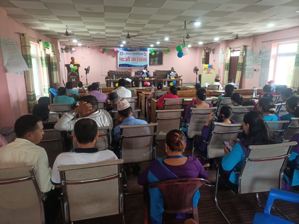 आइतबार गाउँसभाको पहिलो अधिबेशनमा गाउँपालिका अध्यक्ष शम्भु गिरीले १९५ बुदा समेटीएको नीति तथा कार्यक्रम प्रस्तुत गरेकाथिय ।१९ औं गाउँसभाको तेस्रो बैठक विहिवार १२ गते १ बजेका लागि बोलाइएको छ ।