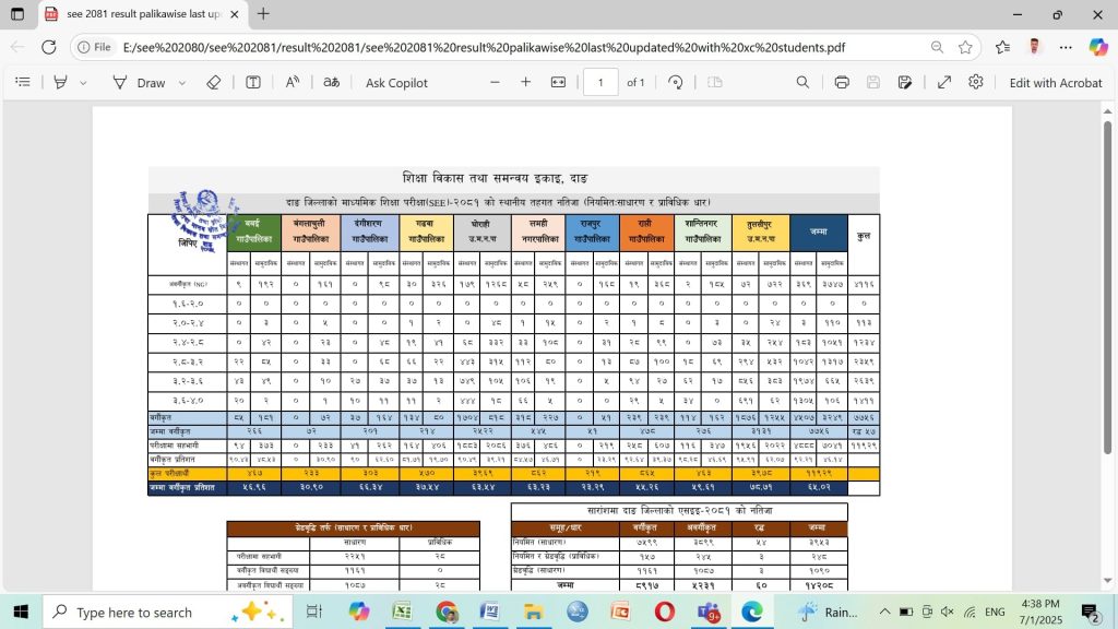 माध्यामिक शिक्षा परीक्षा S.E.E २०८१ को परीक्षामा सामुदायिक बिधालयतर्फ दाङको दंगीशरण गाउँपालिका दाङका १० वटै स्थानीयतह तर्फ जिल्लामै प्रथम ।