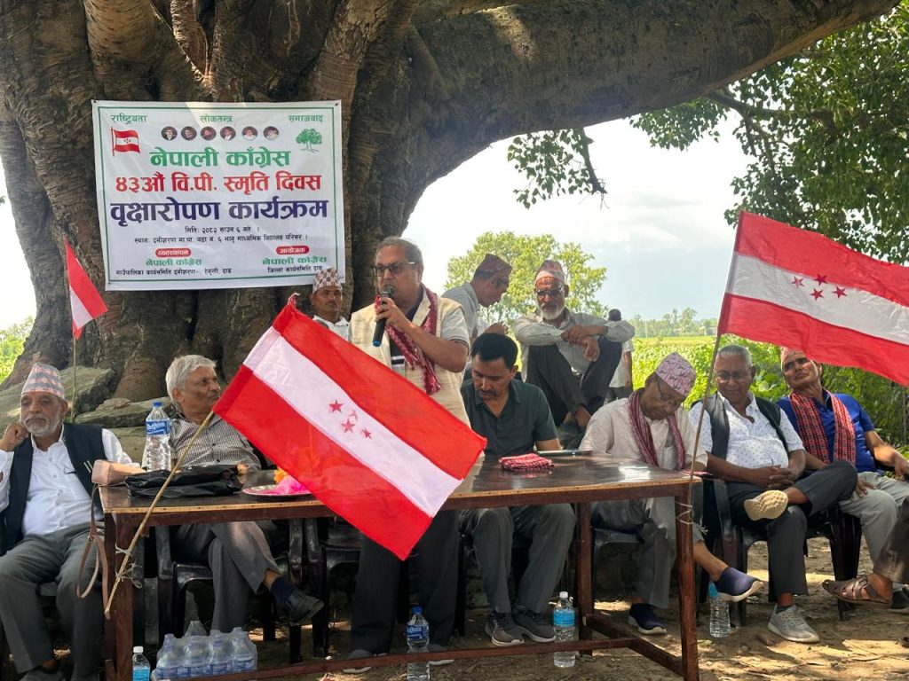 विपि स्मृती दिवसका अवसरमा आयोजित बृक्षारोपण कार्यक्रममा कार्यक्रमका प्रमुख अथिती नेपाली काङ्ग्रेसका केन्द्रिय सदस्य गेहेन्द्र गिरीले ८४ मा हुने निर्वाचनलाइ आफ्नो पक्षमा ल्याउन पार्टीभित्र बहस र पैरवीगर्न आवस्यक रहेको बतायकाछन । यो समयको सदुपयोग र संघठन निर्माणको लागि खर्च गर्नुपर्ने उनको भनाइथियो ।भलइ १४औं महाधिवेशनमा कोहि कतै कोहि कतै लागेउहोला तर अब सवै एकैठाउमा आउनुको बिकल्प नरहेको केन्द्रिय सदस्य गिरीको भनाइथियो ।अर्को प्रसङ्गमा गिरीले आफ्नो चरीत्र आचरण र व्यबहार २००७ साल र २०१७ सालकै चरीत्र,आचरण र व्यबहारले भुइमान्छेको सङ्ग पुग्न नसकिने र जबसम्म काङ्ग्रेस भुइमान्छे सम्म जोडिन सक्दैन भुइ मान्छेको समस्या समाधानका लागि जोडिन सक्दैन तवसम्म काङ्ग्रेस काङ्ग्रेस बन्न नसक्ने प्रमुख अथिती गिरीको जिकिरथियो