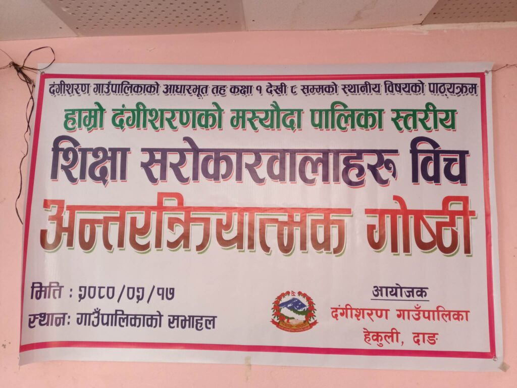 स्थानिय पाठ्यक्रम निर्माणको कामलाइ अन्तिम रुप दिदै दंगीशरण गाउँपालिका ।